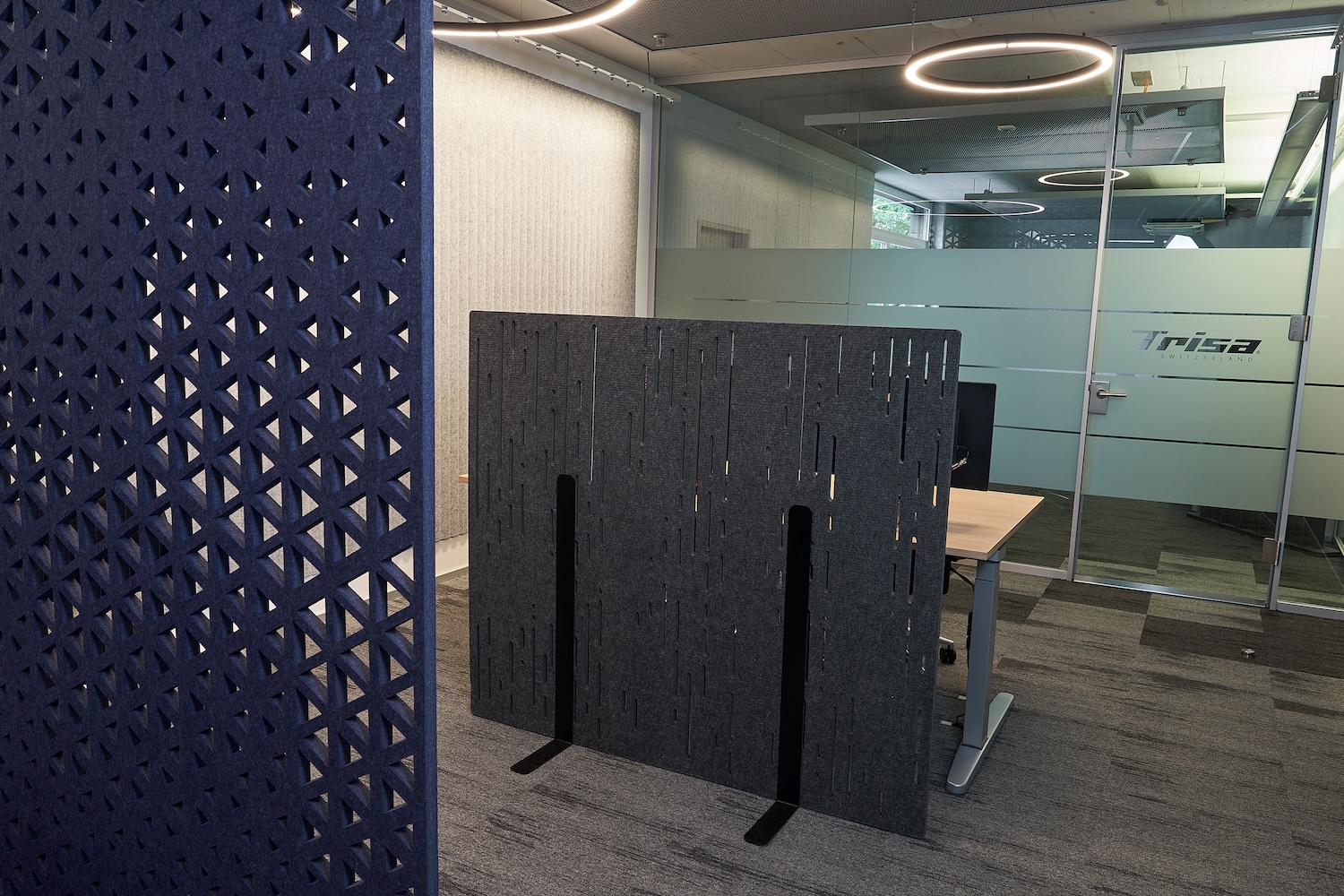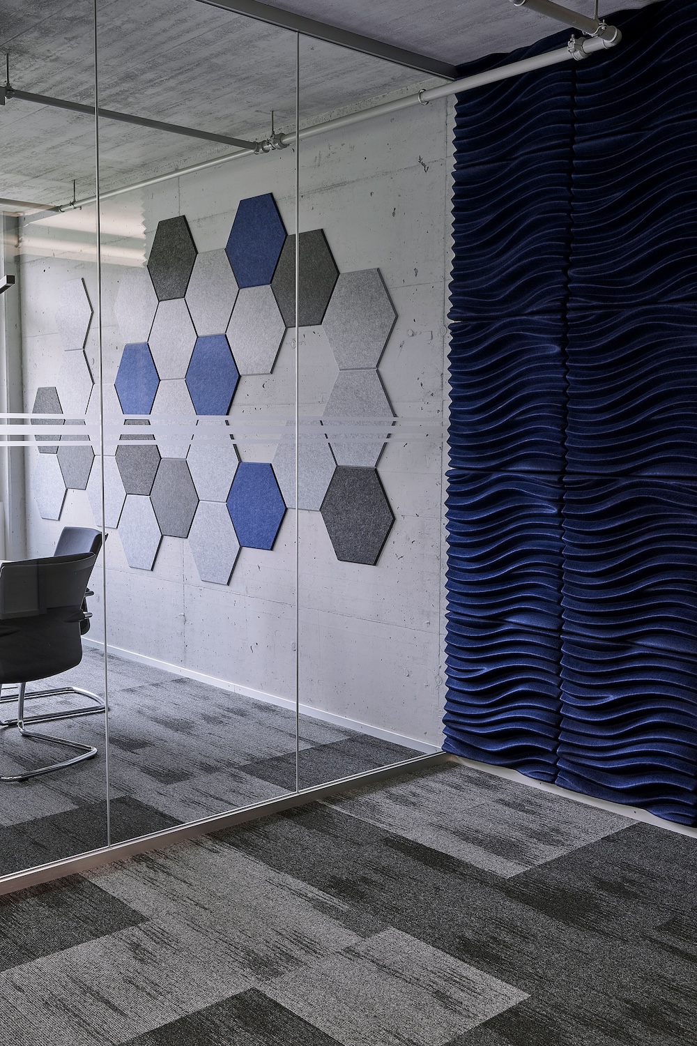 Die Büro- und Meetingräume von Trisa Electronics zeigen, wie sich eine industrielle Bauweise und ein durchdachtes Akustikdesign perfekt ergänzen können. Sichtbeton als gestalterisches Element prägt die Räume, gleichzeitig erforderte er eine gezielte Optimierung der Akustik. Mit verschiedenen Suono Akustikelementen wurden eine Lösungen geschaffen, die Funktion und Ästhetik verbinden.